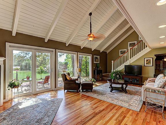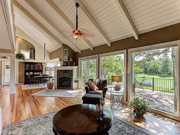 Appealing one-of-a-kind home located on the 8th fairway. The architecturally designed home offers three bedrooms and two bathrooms, 2,138+/- square feet of living space with an open floor plan, expansive windows and soaring cathedral ceilings that create spaces filled with natural light and stunning views of the golf course. Many upgraded features including; refinished hardwood floors, large kitchen with an island, granite counters, newer appliances including a 5-burner gas cooktop, built-in oven, microwave and warming drawer. Inside laundry room and pantry area with built-in cabinets. Beautiful 1200+-sq. ft. newer redwood deck ideal for entertaining.