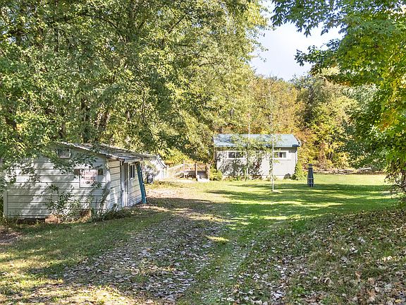 Location Location, this charming cabin is located on approximately 88' of riverfront on the Chippewa River. From the Livng Room, walkout onto the expansive deck and enjoy nature at it's best. Knotty pine interior finishes give it a rustic feel. Lush trees and perrenials offer a private setting with fire pit. Interior has a Living room, 2 bedrooms, kitchen and bath. Stackable washer & dryer as well. There is a shed and 1 stall garage for storage. Newer metal roof on cabin along with easy care siding. Interior needs a few updates - this offers a great year round home or seasonal getaway.