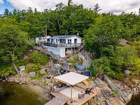 This south facing, 2 building compound sits on 1.23 acres of crystal-clear, deep water frontage that will make your friends and family slightly envious of your morning coffee views.The property features one, 1-bedroom/1 bathroom main cottage with open concept livingroom and kitchen and one, 2 bedroom/1 bathroom bunkie with kitchenette. The main cottage has a durable metal roof and a spacious shore deck that leads directly to the water via convenient stairs because who has time for long walks to reach paradise? Whether you're planning a refreshing swim, launching your boat for an afternoon adventure, or hosting unforgettable gatherings with friends and family, this waterfront haven delivers endless entertainment possibilities. The neighborhood embraces the quintessential Georgian Bay lifestyle, where tranquil mornings and all day sun are simply part of daily life. Beyond your private shoreline, the area offers numerous attractions that celebrate the natural beauty and recreational opportunities Georgian Bay is renowned for hiking trails and golf courses. Adventure and relaxation await just beyond your doorstep. This is more than just a cottage it's your gateway to the coveted Georgian Bay experience, where every day feels like a vacation.
