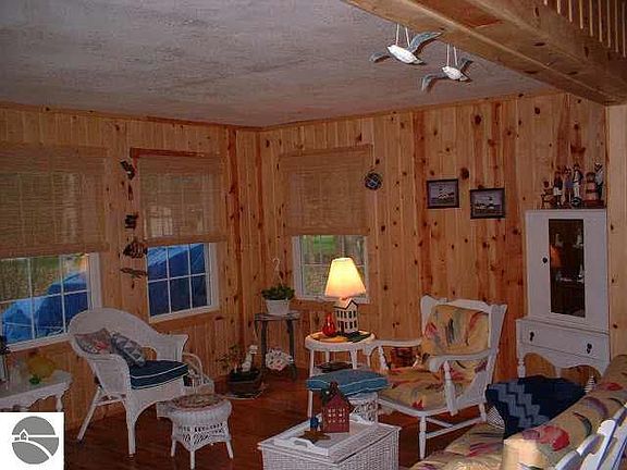 Take a look at this absolutely adorable, very clean cottage. Knotty Pine throughout, including pine cupboards, a real stone fireplace, a sunroom and just steps to a fantastic sandy beach access. The 2 bedroom is currently converted to 1 bedroom and can easily be changed back. This is worth taking a look at.