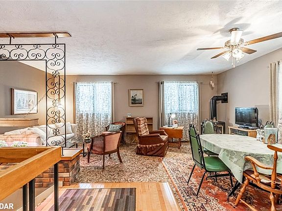 EMBRACE THE POSSIBILITIES ON A PRIVATE, SERENE 1.72-ACRE LOT, JUST MINUTES FROM LAKES & OUTDOOR FUN! Packed with potential, this sidesplit home on a private treed lot is ready for you to make it your own! With two driveways, including one off Haertel Lane, the property provides excellent access and flexibility. Surrounded by multiple lakes, including Sparrow Lake and Grass Lake, and a nearby marina, outdoor enthusiasts will love the proximity to water. This home is conveniently located just 20 minutes or less from Orillia and Gravenhurst, and it offers easy access to dining, shopping, entertainment, and parks. Severn Bridge is also just minutes away, providing local amenities for added convenience, while the nearby Lake St. George Golf Club is perfect for golf enthusiasts. Large windows flood the home with natural light, framing views of the peaceful surroundings. The well-equipped kitchen provides ample counter space and a practical layout for cooking. The main level features a primary bedroom with a 4-piece ensuite, while the upper-level cozy family room with a propane fireplace, plus a living room with a walkout & bar area, are perfect for relaxing or entertaining. Hardwood floors in select areas, a full basement for extra storage, and plenty of potential make this home an exciting opportunity to update and personalize. Set in a peaceful, private location, this property offers endless possibilities to create the space you've always envisioned!