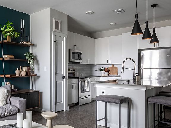 - Exterior features: *In Select Apartment Homes, Accessibility Features Available In Select Homes, Courtyard, Deep Under-Mounted Sinks, Deposit alternatives available through Obligo, Designer Kitchens, Entertainment Room, Game Room, High-End Cabinetry, Large Kitchen Islands With Peninsula Seating, On-Site Management, Online Rent Payment, Outdoor Fire Pits For Gathering, Outdoor Kitchens With Gas Grills, Package Receiving, Parking Available, Pendant Kitchen Lighting, Pet Friendly Community With Indoor Dog Spa, Pet Park, Plank-Style Flooring In Kitchens, Baths, & Living, Private Attached & Detached Garages Available, Spacious One, Two & Three Bedroom Apartment Homes, Stone Countertops, TV Lounge, Tile Backsplash