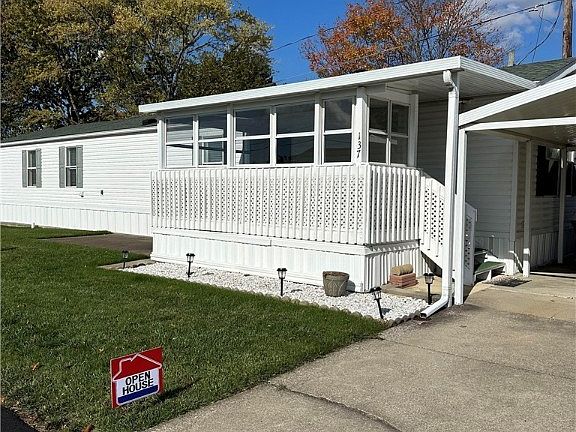 Westview Mobile Home Park is located midway between Akron and Canton, just off Rt. 21. This home built in 1997 is in excellent condition. This is not just a mobile home, it's a home home. With 1054 square feet, two spacious full baths, and a laundry room, this home has lots to offer. This home sits on a long-wise lot, giving spacious front and back yards, with trees, privacy, and room to play. A large 3-season front porch, 2-car concrete drive with a covered 2-car car-port, and a storage shed all added to the charm. The fully appliance kitchen you will also find plenty of cabinets along with a skylight. The way this home is positioned on it's lot allows for abundant natural lighting. Chippewa Golf Course is less than one minute away. This is a must see!