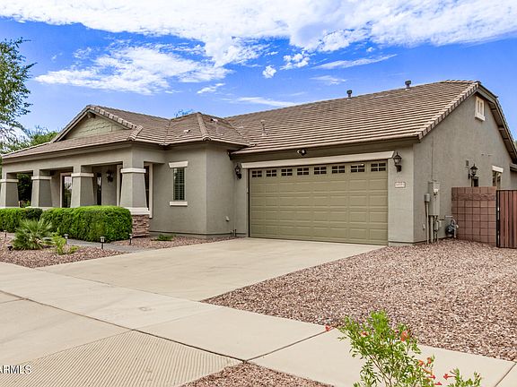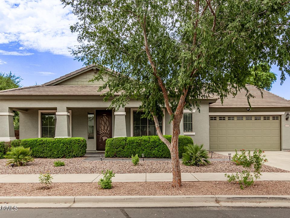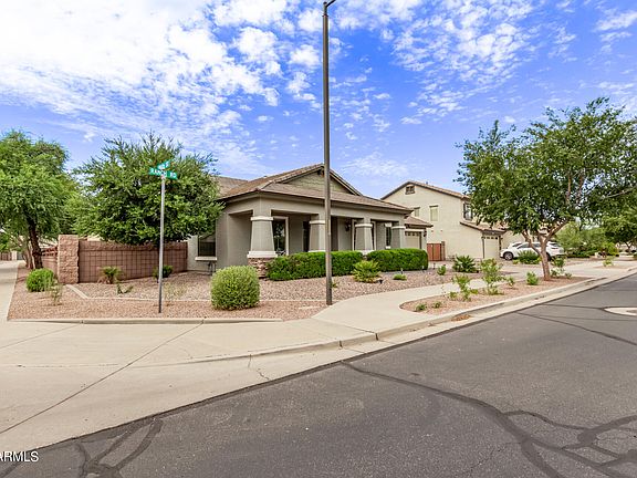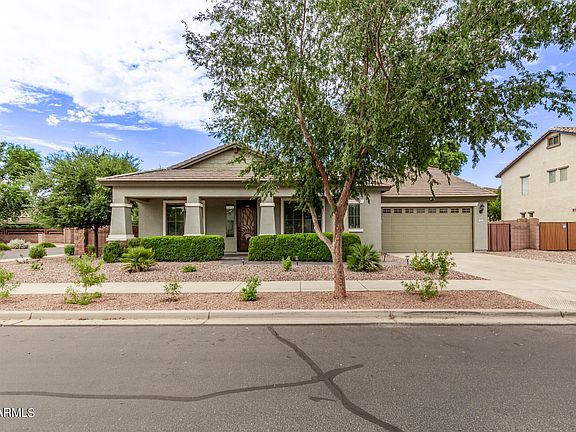 Do not miss this beautifully remodeled 5 bedroom, 3 bath home in masterplanned community of Cortina in Queen Creek! Sitting on a corner lot, across from one of the community parks, the curb apeal is unmatched with new professional landscaping. The front porch is perfect for your morning coffee, watching the kids play or chatting with the neighbors. Walk inside and you are greeted by an open, light and bright floorpan! Just remodeled with new tile, upgraded carpet, cabinet doors, countertops, paint, fixtures, hardware and more! This dream kitchen offers lots of storage with white shaker cabinet doors, gorgeous quartz countertops and black accessories. Look out over the large island to the great room, with plenty of space for a large kitchen table, sectionals, couches or more! Perfect for spending quality family time or for entertaining. The primary suite is spacious and private with a spa like en suite! Offering Corian surrounds, separate tub and shower and a walk in closet with ample storage! The secondary bedroom with it's own en suite offer privacy for guests, or would be a perfect home office space! The split floorpan perfectly offers 3 more large bedrooms and bathroom. Out back is a true oasis with all new turf, plants and enough stamped concrete for dining or lounging! Do not miss out, schedule your appointment today!