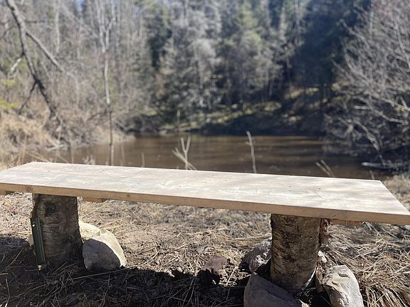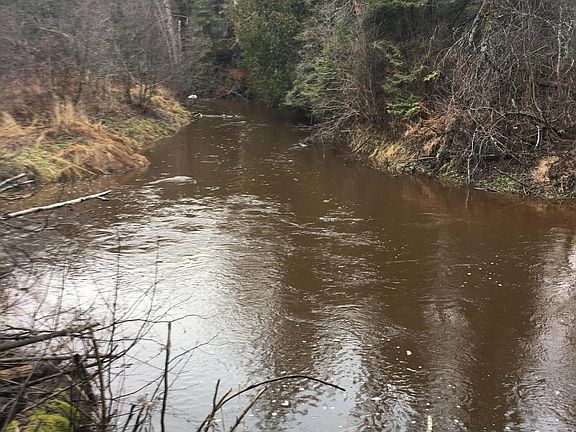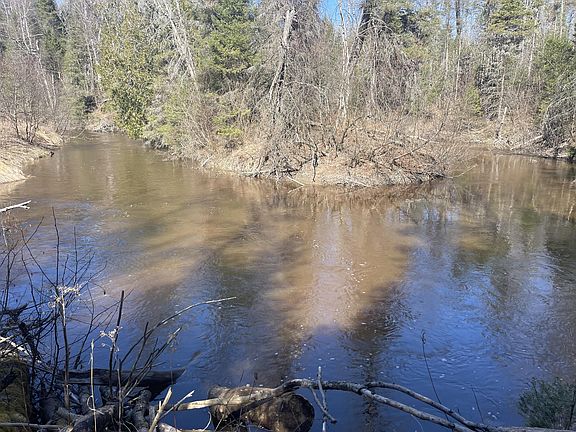 GETAWAY OR IN BEFORE HUNTING OPENS--30 minutes NW of the Mackinac Bridge, nestled 1/4 mile off Dryburg Rd (seasonal) inside a 120-acre mix of Aspen, Spruce, Maple and some oak. Approx 1300' along the Pine River where owner has caught brook trout, steelhead and suckerfish along with deer, bear, turkey, sharp tail, ruffled grouse and ducks too. Numerous updates to the newer well-built cabin include stamped concrete floors, new sauna stove, solar/electric service, water pumping inside the cabin, screened porch, carpet, finishes, newer window and door, $10K into the gravel drive, food plots + 2,500 USDA planted spruce-pine and wildlife trees coming into the parcel. 2 queen beds up and bunks downstairs. Gas lights add to the ambience. The screened in porch overlooks down to the Pine River. The well is 140 feet deep. The sauna is first class and there's an outdoor shower. Four food plots with elevated blinds along with ponds and some wetlands contribute to enjoyable and successful hunting. Parking from snowmobile trail head nearby off season. Excellent getaway to hunt, fish, snowmobile and relax with family and friends for a lifetime of memories. Property layout and snowmobile trail map under documents.