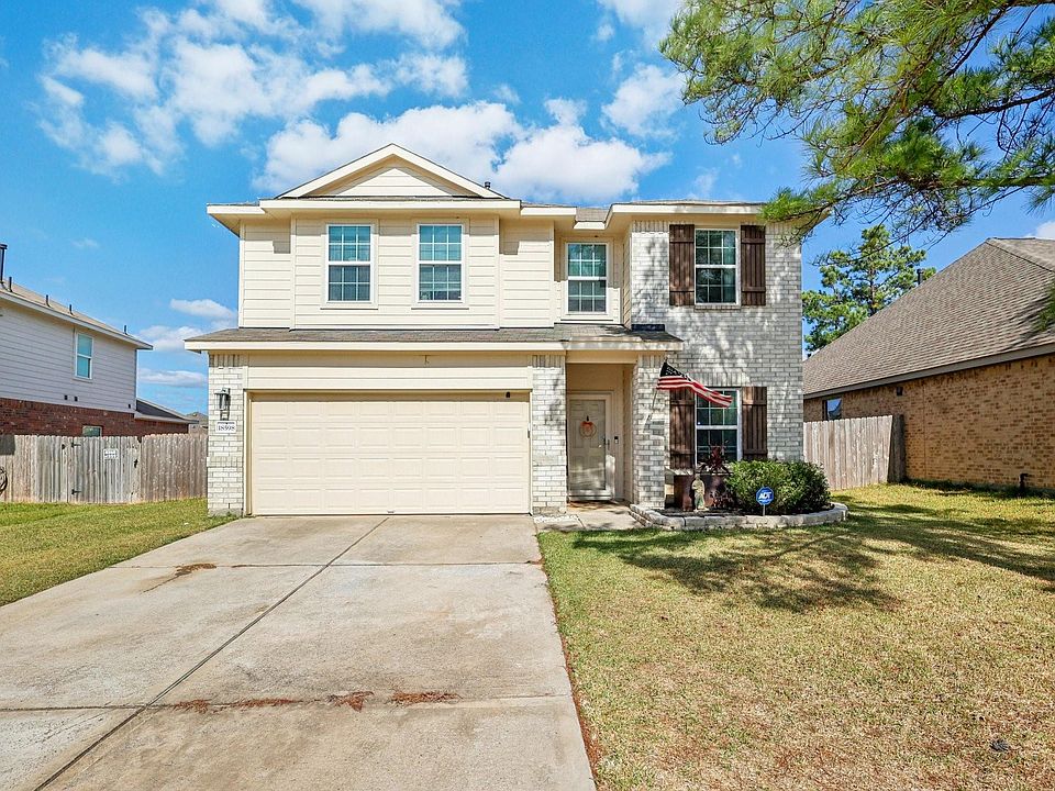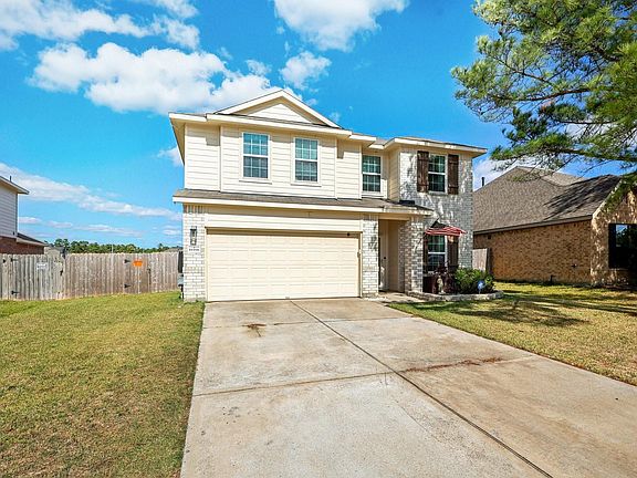 Welcome to this beautifully maintained two story home offering a bright open layout, high ceilings, and spacious living throughout. The kitchen features an inviting island, stainless steel appliances, and a clear view into the living and dining areas, creating an ideal flow for everyday comfort. The first floor includes a private primary suite with double sinks, a soaking tub, separate shower, and walk-in closet, along with a flexible front room perfect for an office or guest space. Upstairs, three generous secondary bedrooms surround a large game room that offers multiple entertainment possibilities. Step outside to a covered patio and a fully fenced backyard with room to relax, garden, or play. Located in the desirable Glen Oaks community, residents enjoy access to a pool, fitness center, dog park, and scenic walking trails. With its modern feel, functional layout, and Magnolia ISD zoning, this home delivers both comfort and convenience.