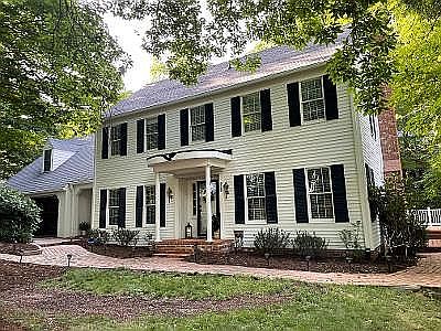 Estate Sale: Stunning Colonial on wooded lot with running stream. Located in secluded, quiet University Village, 10 minute walk from New Market Center with Dollar General, theater, Big Lots, Lowes Foods, restaurants, drug store, bus stop, et. Electric heat, multiple fireplaces, recent appliances, wrap-around deck and non-clog gutters. Furnishings may be included. Home offered AS IS, NO WARRANTIES. Call for appointment