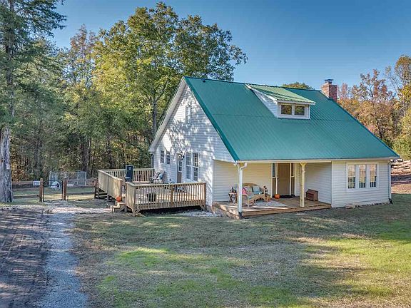 This early 1900s home has been modernized and well appointed with all today's necessities and luxuries! Legend has it that the home was built by the grandson of David Jackson, who was Scotsman who settled in this area, was a tobacco farmer, and also served the office of Magistrate. Inside you will see the care that was taken to maintain the original character of the home, from the completely rebuilt stacked stone wood burning fireplace with cedar mantle, to the knotty pine custom built cabinets! The foyer has a staircase with metal spindles leads to the private master suite. Beautiful hardwood floors adorn the main level and lots of recessed lights. The living room is an excellent size, has tongue and grove ceilings, exposed beams, and is a cozy spot for spending time with family and friends. The kitchen has stainless steel appliances, and wood countertops that are beautiful and durable. Downstairs is a secondary bedroom and a full bath in the hallway services the main level. A storage closet can be found under the staircase. A large deck has been freshly pressure washed extends the entire left side of the home. Plenty of space for grilling and seating your guests! The private master suite is entire second level, and has laundry closet, walk in closet, tile shower with dual shower heads! The acre of unrestricted (fenced) property will be perfect for gardening, kids, and family pets/farm friends! This is a unique opportunity to have a 100+ year old farmhouse that feels like you are living in a newer home! Home is piped for central vacuum but does not have the canister. This home is a pleasure to tour - don't miss out on this Blue Ridge jewel!