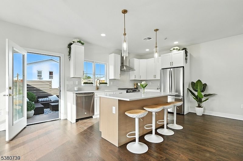 Brand New Modern Luxury " Single Family Home " No HOA!This new 3-level, 2,627 sq. ft. home combines modern design with everyday comfort. Andersen High Performance windows, 9' ceilings, and hardwood floors enhance the open main level, featuring a designer kitchen with quartz countertops and full quartz backsplash, 2-tone cabinetry w/ center island, and all GE stainless steel appliances. The kitchen flows into the dining and living areas, creating a great space for both entertaining and daily living.The primary suite offers a spacious bathroom with double sinks, a glass-enclosed walk-in shower, and a generous closets. You will also find a 2nd bedroom, full guest bath, washer/dryer and flexible office or den. The 1st level includes a recreation/media room, powder room, and full laundry room equipped with full size GE Washer/Dryer & sink.A private 14' x 12' deck, extensive professional landscaping with sod and shade trees creates a beautiful setting. Exterior includes Stone, Hardie Plank siding, paver driveway, and insulated garage with opener. Parking accommodates 3 vehicles.Additional highlights include designer Kohler fixtures and lighting, 2-zone central A/C, natural gas heat, and fire sprinkler on all floors. With no HOA fees, a 10-year homeowner warranty, and a location minutes from NYC transit, dining, shops, and top-rated schools, this home delivers style, function, and long-term value.