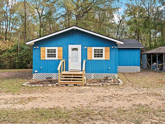Welcome to your perfect East Texas getaway! This cozy 2 bedroom, 2 bathroom home sits on a spacious 1.24-acre deeded lot right across the street from beautiful Lake Murvaul, offering the ideal blend of privacy, comfort, and lakeside living. Step inside to an inviting open-concept living, kitchen, and dining area featuring vaulted ceilings, warm wood cabinetry, and plenty of natural light. The kitchen provides functional counter space and cabinetry, while the living area is spacious enough for both relaxing and entertaining. Both bedrooms are well-sized, and each bathroom is thoughtfully designed, making this home perfect for a full-time residence, or weekend retreat. Outside, enjoy the peaceful wooded surroundings, a large yard for outdoor activities, and a covered parking area. The bold blue exterior gives the home a charming, updated look while maintaining that classic East Texas feel. Located Just steps from Lake Murvaul, perfect for fishing, boating, or simply soaking in the serene views. Whether you’re dreaming of lake living, looking for a quiet homestead, or investing in a vacation property, this one checks all the boxes!
