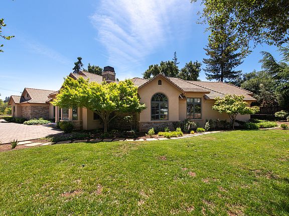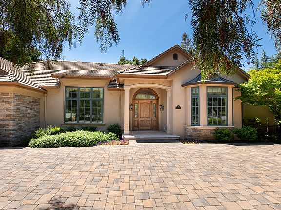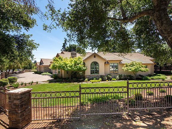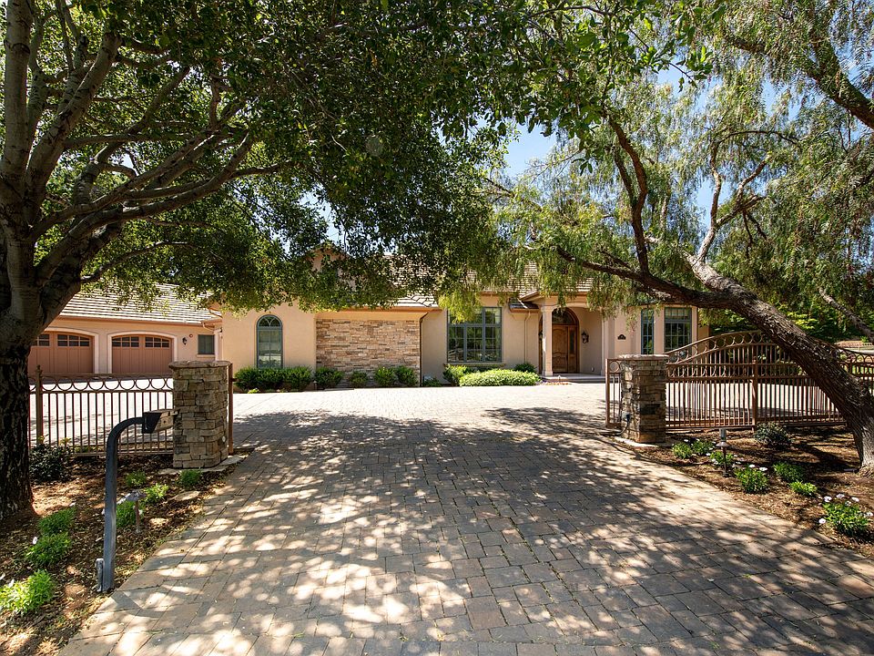 Located on a lot of just over three-quarter acre, this gated estate-quality home showcases impressive curb appeal spanning one spacious level. A vast motor court with dual gated entrances introduces the home, which begins with a towering front entrance opening to finely crafted interiors. Hardwood floors, lofty ceilings with dazzling lighting, and layers of crown moldings and millwork exude luxury and elegance throughout. Formal rooms are scaled for grand entertaining complemented by a tremendous family room with full bar. A handsomely appointed library is located near the master suite, which includes the optional fourth bedroom, office, or nursery, plus two full baths. There are two additional bedroom suites, one at each end of the home for the ultimate in privacy. The rear grounds are designed with entertaining in mind, including covered and open terraces, a built-in barbecue center, rose gardens, and amazing space for indoor/outdoor living.