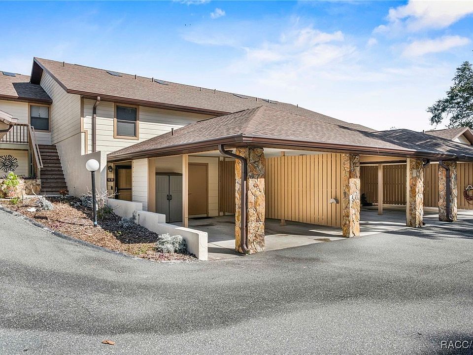 Lock in your living expenses in this care-free condo that includes more than just utilities and maintenance! Enjoy dedicated amenities including onsite pool and tennis, or venture into the exclusive Bella Vita Spa and other Citrus Hills showcase venues with your social membership to all the activities Citrus Hills offers (Golf packages not included). Ground floor entry with covered carport provides direct access to the unit unlike many other units in this complex. Inside you are greeted with gleaming hardwood floors and an updated kitchen that features wood cabinets, granite counters, tile backsplash and a pantry closet. There is plenty of space for casual dining and living that also leads to an enclosed patio for an all-season room. There is a ½ bath on main living level. The primary suite is upstairs and features its own screened balcony with a newer heavy duty double pane sliding glass door out to a wonderful perch to view mother nature’s antics! The bath features a shower, skylight, and nearby walk-in closet. The guest bath has tub/shower combo. The roof is maintained by the association and was replaced in 2022. This value-packed condo in the heart of Citrus Hills offers an affordable choice for an active lifestyle without all the responsibilities of property maintenance and upkeep that comes with most single-family homes. Lock in your lifestyle today!