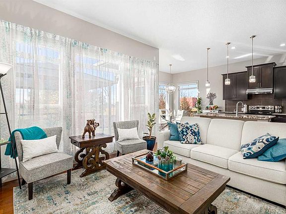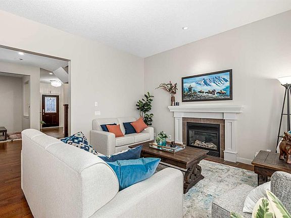 Wake up to breathtaking mountain views and enjoy your own WEST-facing backyard oasis. Welcome to 186 Ravenscroft Green, a beautifully maintained and upgraded family home in a highly sought-after quiet location, BACKING ONTO A WALKING PATH AND OPEN FIELD. The main level features a spacious front entry with a dual-door coat closet that leads into a bright and private office or den, ideal for working from home. The open-concept living area offers 10-foot ceilings, large windows, and a cozy gas fireplace, creating a warm and inviting atmosphere. The chef-inspired kitchen showcases elegant granite countertops, a large island with under-mount sink and eating bar, stainless steel appliances, and a custom walk-through pantry complete with built-in shelving. The adjoining dining area opens through dual patio doors to the west-facing deck and backyard, perfect for entertaining with a built-in BBQ gas line. A half bath and a convenient laundry and mudroom with garage access complete the main floor. Upstairs, the beautiful spindled staircase leads to a spacious bonus room with vaulted ceilings and an abundance of natural light. Three generous bedrooms include the primary retreat, which offers stunning mountain views, a massive walk-in closet, and a luxurious spa-inspired ensuite with dual sinks, a soaker tub, a large walk-in shower, and plenty of counter and cabinet space. A four-piece main bath serves the additional bedrooms. The unfinished basement provides the perfect layout for future development with room for two bedrooms, a large recreation area, and a roughed-in bathroom. The home is complete with a high-efficiency furnace, new hot water tank (2025), upgraded trim throughout, and recent exterior updates including new siding, roof, and garage door completed in 2021. Backing onto greenspace and a walking path, this home offers the perfect balance of space, style, and location. Don’t miss your opportunity to own this exceptional property with incredible mountain views in one of the area’s most desirable communities. Book your showing today!