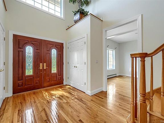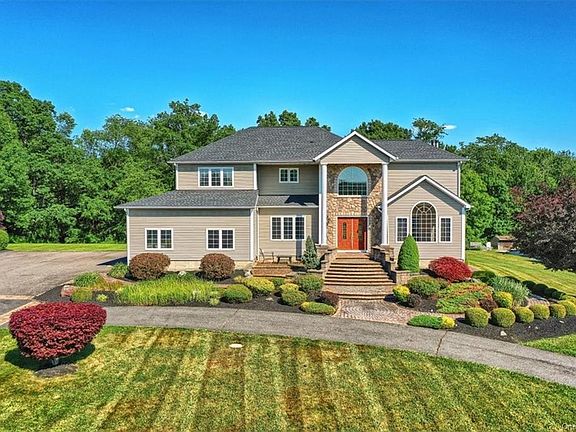 This breathtaking colonial home offers a combination of elegance and comfort. As you enter the driveway, the expansive lawn and beautiful paver entrance says welcome home. Upon entering this home, the stunning two-story foyer, hardwood floors, and expansive windows will greet you with an abundance of natural light. The high ceilings and spacious rooms give this home an open feeling throughout. Wonderful details surround you throughout including the curved staircase, transom windows, and French doors. In addition to the formal living and dining rooms, the 2 story family room opens up to the kitchen with access to the back patio. The first-floor bedroom and full bath is perfect for guests, in-laws or au pair. The second floor contains 3 generous bedrooms and a hall bath. The primary bedroom includes ample closet space and an impressive bathroom. The stunning paver patio complete with a fireplace and backyard will lend itself perfectly to entertain your family and friends. Need any extra room? The finished lower level offers and additional 1,100 square feet and includes a recreational room, office/den, full bath, and fitness room! Enjoy all that the Hudson Valley has to offer this home is minutes to all roadways, shopping, restaurants, airport access, hiking and biking trails, wineries, and so much more!