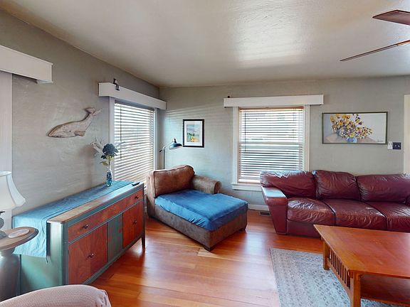 2 Bedroom, 1.5 Bathroom furnished home in downtown Cayucos. Two Blocks from the beach. This home features a front porch and an enclosed back yard. The living room has a large amount of seating and a large TV making it a great entertainment space. Right off of the living room is a dining room with seating for 8. Each bedroom has a Cal King bed with a large closet. The kitchen comes fully equipped with plates, pots, pan and utensils. Leading into the backyard is a mud room where the washer and dryer are kept. The home has great natural light as well as some ocean views. Some off street parking is available. All utilities are included. Pets considered. *Hot tub was removed, no longer available*