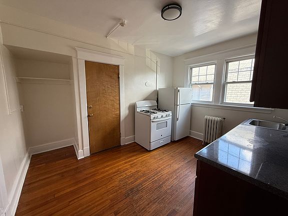 Welcome to a charming apartment on Elm Street, blending classic details with modern convenience. You'll love the beautiful hardwood floors that flow throughout the living spaces and bedroom, creating a warm and inviting feel.