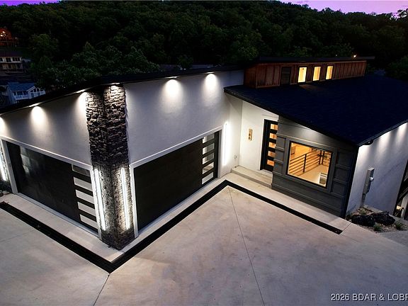 Stucco & stone exterior finish, stunning home and is FULLY FURNISHED/TURNKEY SELLER WANTS OFFER! Interior designed by Hockman Interiors, Custom bunkbeds, Indoor/outdoor bar lounge with custom concrete bar tops, equipped with 85" tv, Saltwater Pool & firepit patio with custom concrete benches, New Traeger Grill included. Large windows to maximize views, all while enjoying cove protection off the Osage 17MM. Luxury plank flooring, unique lighting to the quartz & granite counters to the maintenance free decking, you will be impressed top to bottom! This one was built for fun & the lake lifestyle - 4 levels is perfect for multiple families or groups. Offers 8 beds/6 1/2 baths w/living space & large covered decks on each floor. Favorite features are the stunning kitchen w/the huge waterfall island, ultra cool Bespoke European glass appliances, the one of a kind lighting and the butlers pantry. Dining area is surrounded by glass & the living area has an electric fp w/all the bells & whistles. Master suite has a bathroom & closet we all DREAM of! Garage is a drive-thru/double doors for easy in & out! Game room on the third level ,14x20 dock. Large dock possible