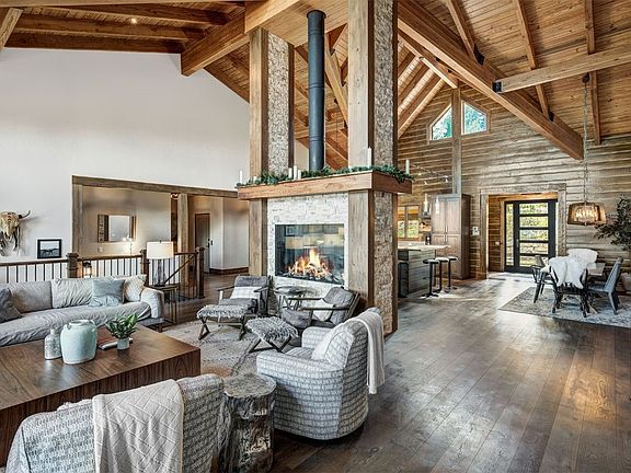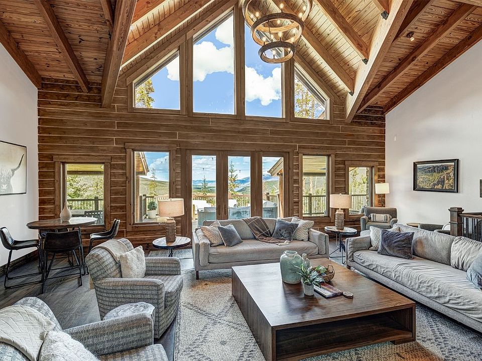 Perched above Breckenridge with sweeping views of the Ten Mile Range, Buffalo Mountain and Lake Dillon, this extraordinary 6,500 square foot Colorado log home blends rustic elegance with modern luxury. Designed for grand living and entertaining, the home features expansive multi-living areas and spacious bedrooms—all with en-suite, custom-designed baths. At the heart of the living room is an iconic fireplace, creating a dramatic focal point beneath soaring ceilings. The chef’s kitchen is a true showpiece, boasting a massive live-edge island, Sub-Zero and Wolf appliances and high-end finishes throughout. An elevator adds convenience, while wraparound outdoor living spaces offer sun-soaked decks and a private hot tub to take in the alpine views. Ideally located just minutes from world-class skiing, dining, hiking, biking, fishing, and boating, this home delivers a one-of-a-kind mountain lifestyle with top-tier amenities, stunning craftsmanship and unforgettable surroundings.