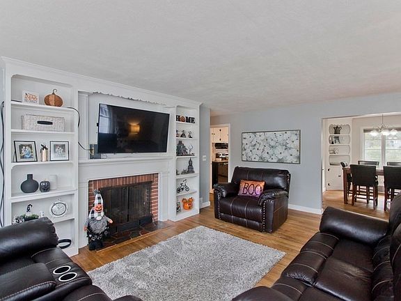 Welcome to this charming brick ranch home featuring 3 spacious bedrooms, hardwood floors, and two cozy fireplaces, perfect for chilly evenings. Enjoy the luxury of an inviting inground pool complemented by an outdoor bar and gazebo, ideal for entertaining and creating lasting memories. Additionally, the partially finished basement offers versatile space for recreation or relaxation. Recent updates include brand new central air in April 2023, renovated bathroom in 2019 that was completely updated with tiled tub and shower, and an expanded pool patio area. The backyard and pool area are fenced with additional open space behind the pool area. Embrace comfort and style in this beautiful home designed for both indoor and outdoor enjoyment.