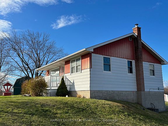Set on a peaceful rural lot surrounded by open farmland, this charming 2 bedroom, 1 bathroom bungalow offers a perfect blend of privacy, comfort, and convenience. Built in 1965 and just minutes to Hwy 401, this home is ideal for first-time buyers, downsizers, or investors looking for a solid opportunity in the growing Quite West/Belleville area. Bright living room with large picture window and hardwood floors overlooks scenic countryside. Functional eat-in kitchen with potential for modern updates. Split side-entry staircase leads to a full-height unfinished basement - ready for your finishing touches or possible in-law suite. Recent updates include new shingles (2021), vinyl windows on main floor, new water filtration system (2025), and an updated thermostat (2025). Enjoy an attached double garage with automatic door opener - ideal for hobbyists or a workshop - plus a paved private driveway, front porch, side deck, and garden shed. Quiet rural living with hospital, schools, shopping, and Hwy 401 access only minutes away. Vacant and move-in ready - start your next chapter at 186 Grills Road.