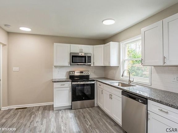 Updated abound in this 3 bedroom 1.5 story home in Ebensburg, PA. A new roof and windows, all new interior walls, bathroom, and kitchen with granite countertops and new cabinets. New furnace and water tank, electric panel. Main level has the 3 bedrooms, full bathroom, living, dining, and kitchen. The second level has 2 connected rooms. 2 car detached garage. Nice front and rear yards. Circular driveway for easy access to Jamesway Road.