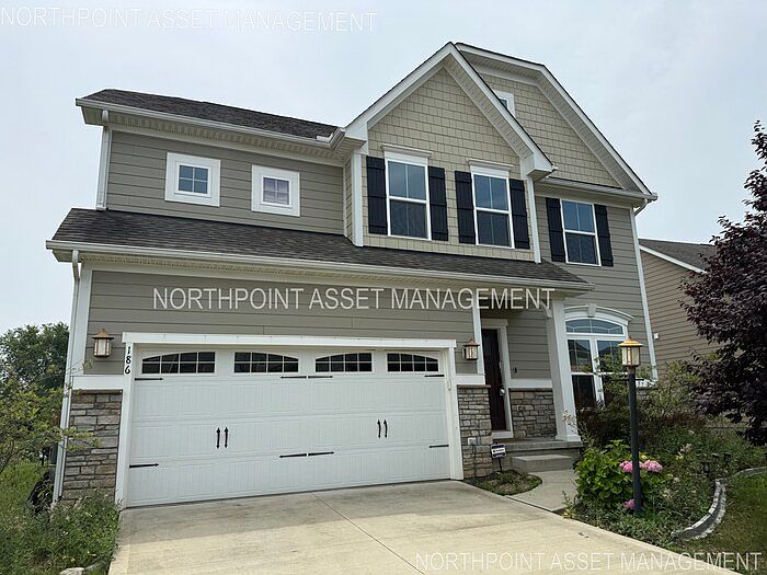 Spacious 4 bedroom, 2.5 bath home located in a quiet neighborhood in Lewis Center. The home features a spacious floor plan with an open concept kitchen, dining, and living room, along with a separate front room. The modern kitchen boasts ample counter space, and an island perfect for gatherings. The primary suite features a large bathroom and a walk-in closet. Relax in the fenced in backyard that boasts a patio and a view of the community pond and greenspace. Pets welcome.