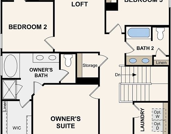 Upstairs, a versatile loft offers space for work, play, or relaxation, while two secondary bedrooms—one with a walk-in closet—are ideal for family, guests, or hobbies. Completing the layout, the expansive owner's suite provides a private retreat with a generous bedroom, a sprawling walk-in closet, and a luxurious attached shower and soaker tub, blending practicality and comfort for modern living.
