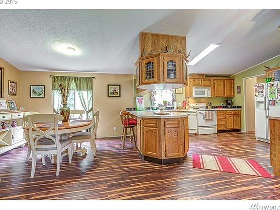 Looking for privacy, this is it! Well maintained 3 bed, 2 bath manufactured home on level usable five acres. Home was built in 1997. Newer exterior paint, metal roof, and cinder block skirting. Interior features laminate flooring and large open floor plan, separate living room and family room. Wood stove and hot tub for winter comfort with efficient heat pump and forced air heat.
