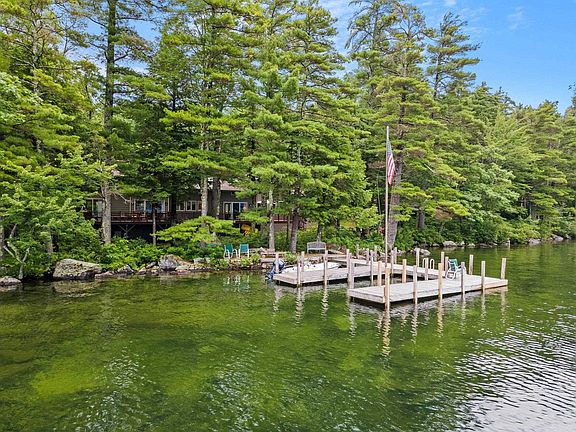 Squam Lake living awaits you at this premier waterfront property on Harvard Point. This impressive year-round spacious home is situated on 5.1 gently sloping acres with over 300’ of pristine shoreline. From the porch and the U-shaped dock you have unobstructed views to the west of the Islands and the entire Squam Range, allowing for magical sunsets. Enjoying the tranquility and fun of the water is seamless as the house is situated just over 50 feet from the water’s edge. Along with the oversized dock, there is a sandy beach with stone steps to the water. An impressive brick fireplace divides a large dining area and the living room. With plenty of additional space to spread out in the newer family room or library, everyone can seek peace and quiet. The outside deck runs along the entire length of the house on the lake side, plus a sunny patio for morning coffee. Each room in this 5- bedroom house has a lake view. In addition to the spacious main house, there is a spectacular craftsman’s guest house with 2 additional bedrooms, a sitting area and a screen porch. The property boasts a har-tru tennis court in perfect condition plus a treehouse for the adventurers. Beautiful perennial gardens lead the way to the main entrance. This special slice of Squam Lake is the perfect property to create the memories of a life-time!