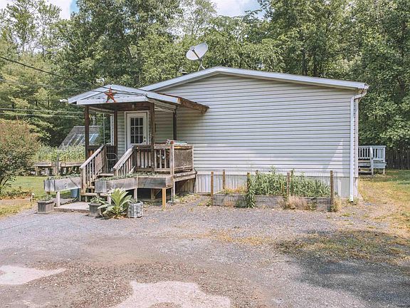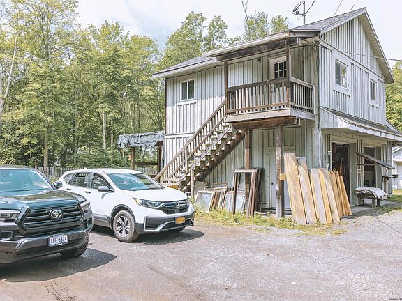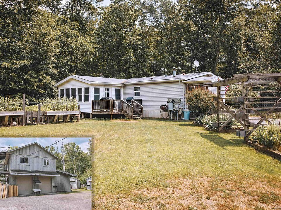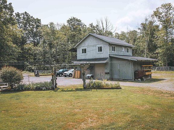 Amazing opportunity to own an extremely unique property! Perfect for a snowbird or car enthusiast. 4.29 Acres in the Fishcreek area of Saugerties. Property consists of a 3 bed / 2 bath 1,636 sq. ft. manufactured home with a sunroom extension, 24'x24' 2-car garage with a side workshop, above garage is an unfinished 576 sq. ft., 1 bed / 1 bath apartment with electric for extra income and an unfinished 6'x8' deck, a 14'x28' boat shed with electric, a 10x12 storage shed, and an 8'x12' greenhouse. The main home is spacious with wide open Kitchen, Livingroom, and dining area with wood burning fireplace. All 3 bedrooms are a very good size. Primary bedroom with spacious full bathroom with his/her closets, soaking tub, & shower. Central air. 200 amp service. Seller grows almost all of his own vegetables in the custom greenhouse and the many home made planters throughout the property! The property line goes well beyond the western fence line. Survey available.