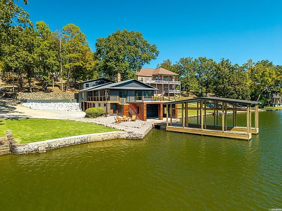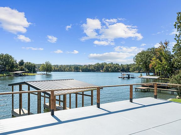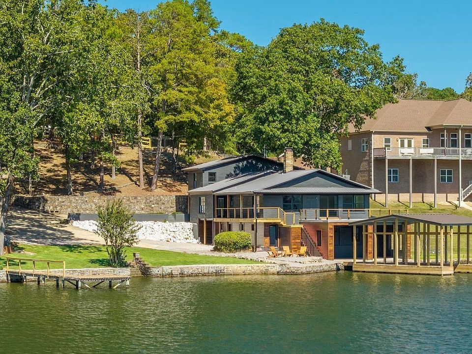 This stunning 6-bedroom, 5½-bath lakefront home has been fully remodeled down to the studs! Every detail of the 4672 sq. ft. home has been updated with thoughtful design and modern finishes with classic lake charm. Updates include all new finishes, electrical, plumbing, fixtures, flooring, and exterior improvements. Situated on .90 acre with breathtaking year-round water views, the home features an open-concept layout filled with natural light. The spacious living areas flow seamlessly into a modern kitchen with premium appliances, quartzite countertops, and stylish cabinetry. Each bedroom comes equipped with a beautifully designed bathroom, and the primary suite is nothing short of spectacular. Each level has its own living area and kitchen. Outside, enjoy a brand-new private boat dock on deep water and two separate patio areas. An additional lakefront lot is included with the home and is permitted for a separate boat slip—ideal for expansion or investment. Also included is a 1500 sq ft workshop/garage structure on the extra lot which would be ideal for another home or guest house. Whether its used as luxury lake residence, family compound or STR, this property truly has it all!
