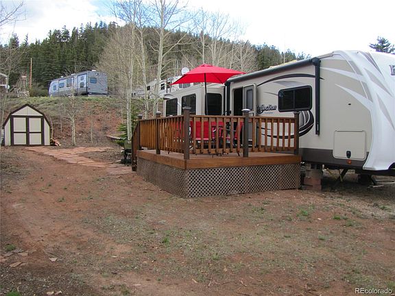 Motivated Seller!!!! Summer fun for all!!!! This property has a 2015 Grand Design Reflection with 3 slide outs and all the bells and whistles. It is located in the DSP section of the Campground of the Rockies (CORA), a unique gated community with many, many amenities including, an indoor full size swimming pool, a community center with kitchen, multiple laundry and shower facilities, full time management staff, tennis courts and even stalls for your horse, if you should have one. This property is personally owned and includes the trailer, newly built deck and shed. The views are wonderful from this well treed lot. This is a great property that is priced to sell at $89,500!!!!