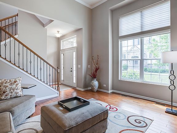 This super sharp 2 bed, 2.1 bath townhouse sits in the wonderful Easton Park Community in Carol Stream! This meticulously cared for home has many fine details such as white trim and gleaming hardwood floors. As you enter, be amazed by the fabulous family room with it's big bright windows and tall ceiling. Head up the beautiful staircase with wrought iron spindles. The gourmet kitchen offers all stainless steel appliances, a center island, granite counters and a pantry. The separate dining space allows for a perfect area to have lovely meals. Plus there is extra space adjacent to the kitchen that is great for a desk. The second set of stairs will take you to the top floor, where you will find the primary suite w/a luxurious private bath and a large custom walk-in closet. The second bedroom is an en-suite and features a private bath and a walk-in closet. Hot Water Heater 2017, Furnace / Air 2011, Microwave 2019. Fantastic location close to shops, dining, parks and easy interstate access. Don't miss it!