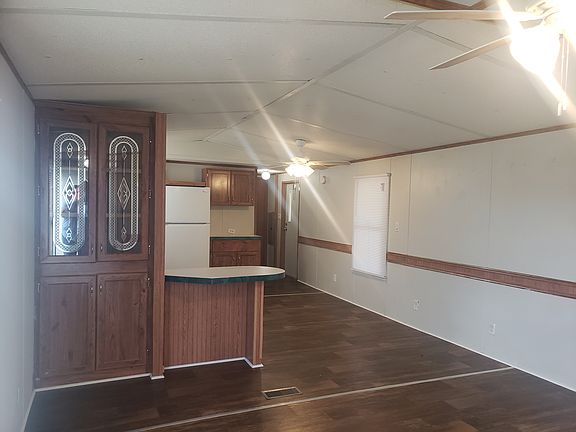 800 sqft. located in a very strict mobile home park on a large lot. Open floor plan with a large kitchen including a range and refrigerator. Washer and dryer are provided by owner. The mobile home park community provides lawn care and trash. Updated hot water heater, heating, and air to assist with efficient utilities. Quarterly pest control contract is provided as well. NO SMOKING. NO PETS.