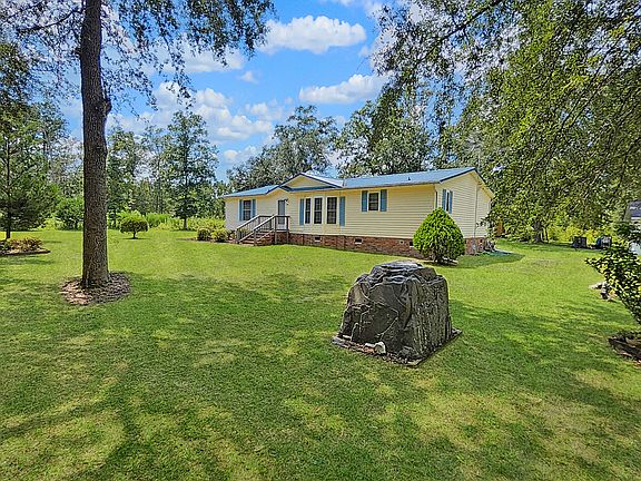 Welcome to over 6 acres of serene country living--30 minutes from Moncks Corner, 45 mins from Summerville, and 10 minutes from Lake Marion! This meticulously maintained 3-bedroom, 2-bath mobile home sits on a solid brick foundation and offers the perfect balance of privacy, space, and convenience. From the moment you arrive, you'll appreciate the wide-open setting and peaceful atmosphere that define true country living. Inside, the spacious living room with soaring ceilings and abundant natural light creates an inviting atmosphere for relaxing evenings or entertaining guests. The open layout flows seamlessly into a large kitchen that features plentiful cabinetry, generous counter space, and an eat-in area ideal for everyday meals. Just off the kitchen, a charming three-season room allows you to take in panoramic views of your expansive acreage throughout much of the year, blending indoor comfort with the beauty of the outdoors. The primary suite is designed for comfort, with a spacious bedroom and an en-suite bath complete with a soaking tub and a walk-in glass shower. Two additional bedrooms provide plenty of natural light and share a full bath with a convenient tub/shower combo. A large laundry room with outdoor access adds to the home's functionality. Outside, you'll find mature landscaping that enhances the home's private feel. A detached two-car garage and multiple sheds provide secure parking and ample storage for vehicles, tools, and equipment. Still, the crown jewel of this property is the over 6 acres of land, offering unmatched privacy and endless possibilities for gardening, animals, or simply enjoying the quiet of the countryside. And while the setting feels worlds away, convenience is always close by. You're just 30 minutes from Moncks Corner, 45 minutes from Summerville, and less than 10 minutes from Lake Marion, where boating, fishing, and outdoor recreation await. This property offers more than just a home it provides a lifestyle of space, freedom, and connection to nature with the convenience of nearby towns. Schedule your showing today and experience country living at its finest on over 6 acres!