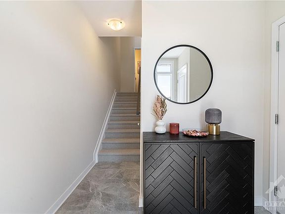 Welcome to this freehold 3-storey townhouse in Fernbank Crossing! Built in 2021 by EQ homes. Modern design with 2 Beds, 1.5 Baths,1 Garage, and a balcony. A large welcome foyer leads you to the garage and laundry with upgraded CERAMIC titles floor. The 2nd floor features a 9' smooth ceiling, a bright and open concept living room and a formal dining room with High-end Vinyl flooring throughout the balcony and Upgraded Modern Light Fixtures. The delightful kitchen offers a generous island & ample cabinetry, decorated with a luxury pendant. All stainless steel appliances throughout the house. upstairs 2 large bedrooms with oversized windows and 3 piece bathroom. Spacious walk-in closets are available in the Master bedroom. Assoc fee includes private road snow removal, maintenance and garbage. Minutes to shopping, grocery, new secondary & elementary schools, parks, trails, and more! Full Tarion Warranty, New Sod Installed.