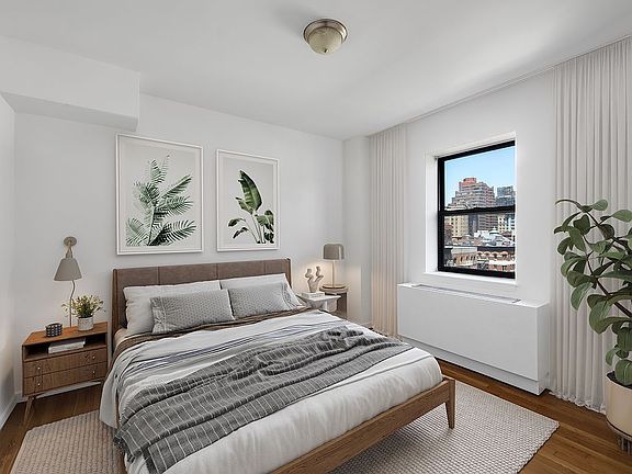 Perched above the Upper West Side's iconic brownstones, apartment 7K in The Chesterfield bathes in natural light, creating a bright and airy ambiance. Large windows in every room frame open views of the charming neighborhood, complemented by gleaming hardwood floors throughout. The expansive king-sized bedroom offers ample space and a generous walk-in closet, while the sleek windowed kitchen boasts granite countertops, custom cabinetry, and modern stainless steel appliances, including a dishwasher, refrigerator, and stove.