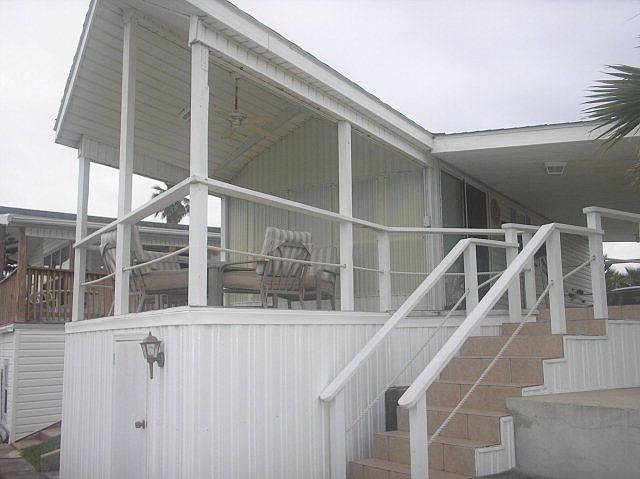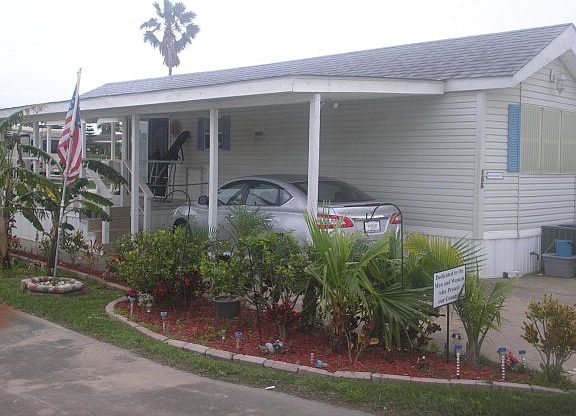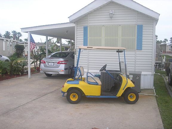Park model on channel with everything included; boat lift with remote control, golf cart with new tires and batteries, all appliances, utensils, dishes, linens, fishing equipment, furniture, grill, smoker, and everything you need to move in. Covered patio with channel views, covered parking, lighted fishing dock, fish cleaning station. Possible owner financing.