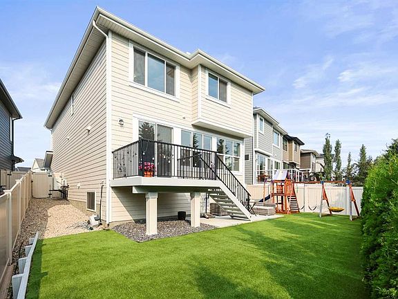 Step into this luxurious offering in amazing West Springs! Close to trails and parks, and with a secluded, private backyard, this Cedarglen built home is a unique home that won't last long. Quartz countertops throughout, extended windows, central air conditioning, luxury vinyl plank flooring & hardieboard exterior are some key features. Walking into the home through the front door the living room/dining room combination has gorgeous views of the secluded backyard with massive extended height windows that brighten up the home. The kitchen has an island, stainless steel appliances, built-in microwave and gas stove, making it a chef’s dream! There is a walk through pantry off the kitchen and a patio door to the deck. Coming in from the garage you can take your boots off in the spacious mud room. Going upstairs you’ll find the primary bedroom on the left, overlooking the neighbouring acreage, with a well appointed 5 piece ensuite. The laundry room is conveniently located on the top floor. The large bonus room is a great place for a family hangout with a view to the north west. The basement is fully finished with a bedroom and 4 piece bathroom, and the large windows allow in lots of light. The back yard has artificial turf, and the front yard is done with rock, so the maintenance is a breeze. The exterior is finished with hardieboard, which is extremely resilient. The back deck has natural gas for your summer barbeques. The secluded private backyard is the most attractive feature of this property!