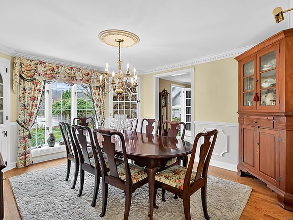 Originally built for a member of the JB Williams family in 1936, this expanded and updated Cape on over an acre of land has been lovingly cared for and maintained by the same family for almost 50 years. This delightful 4 bedroom 2 1/2 bath home is located in the Buttonball school district and is convenient to all that Glastonbury Center has to offer. The gracious foyer with turned staircase is flanked by a paneled home office/library on one side and the formal living room with gas fireplace on the other. A family room with vaulted ceiling and wood stove is a step down from the remodeled cherry kitchen with granite counters and stainless-steel appliances. A formal dining room with corner built-in hutches next to the kitchen is ready for those holiday dinners. The thoughtful addition of a first-floor primary suite with walk-in closet and gorgeous full bath with jetted tub and steam shower allows for one floor living if needed. Upstairs, 3 bedrooms share an updated full bath, with a bonus space off one bedroom that could be a craft space, art studio or study nook. The finished lower level boasts a second gas fireplace, along with one of a kind wood paneling from a former Glastonbury center barn. Not only is there a 2-car attached garage, but there is a 2 car detached garage with finished space above - perfect for that private home office or home gym. Updates galore including a newer roof, Andersen and Harvey windows throughout, brand new boiler, central air compressor and on demand hot water heater. There is plenty of space to enjoy the outdoors, from the stamped concrete patio on one side of the house with a fully fenced area to the other side of the house with a brick patio and pergola. This gem is not to be missed!