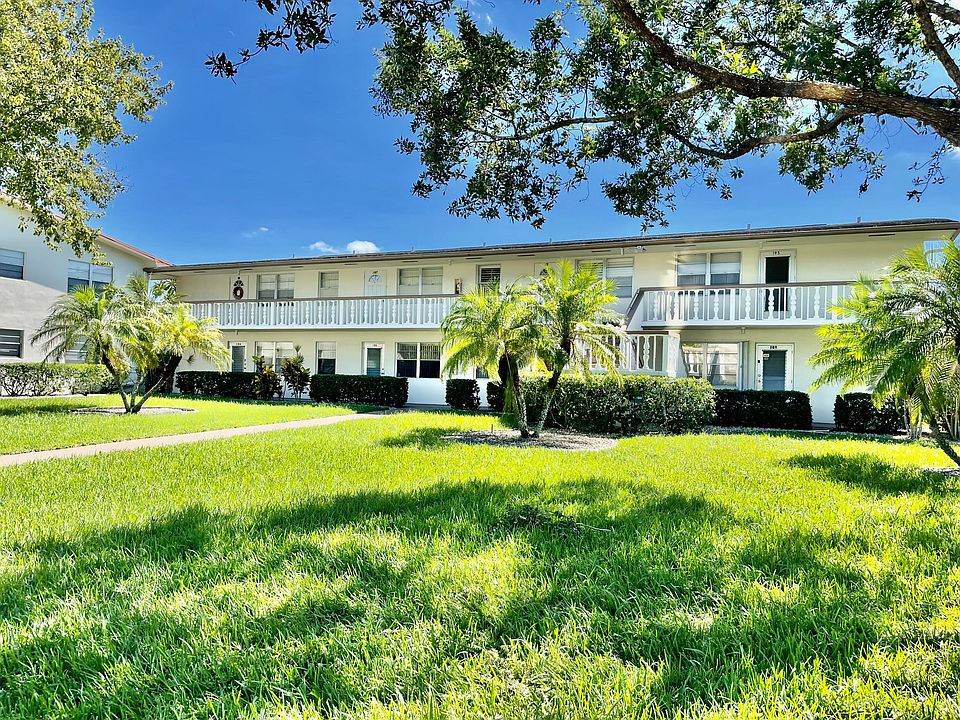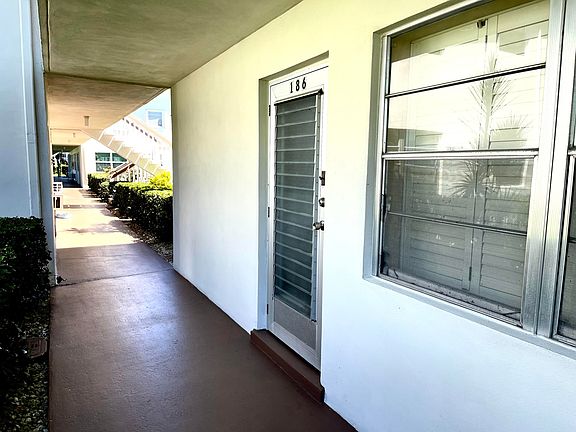 Perfect, Immaculate 2 Bedroom, 2 Bath Century Village Condo! First Floor End Unit steps from Storage Area and Laundry Services. Plantation Shutters on most windows. Laminate Flooring in most Rooms. Wonderful Kitchen with Granite, White Cabinets with abundant Counter and Cabinet Space including Pot Drawers. Cozy Dining Area off Kitchen and Great Room with Counter and Shelves. Great Room with Track Lighting and Shelves. Fabulous Remodeled Main Bath. Spare Bath has Shower with Glass Doors. Second Bedroom has Oversized Walk-In Closet and Sliders to Patio. Main Bedroom has nice Walk-Up Closet. Covered and Screened Patio has Hurricane Roll-Down Shutters and a Storage Area. The unit comes Fully Furnished excluding Kitchenware. Ceiling Fans with Lights in both Bedrooms. Must see!