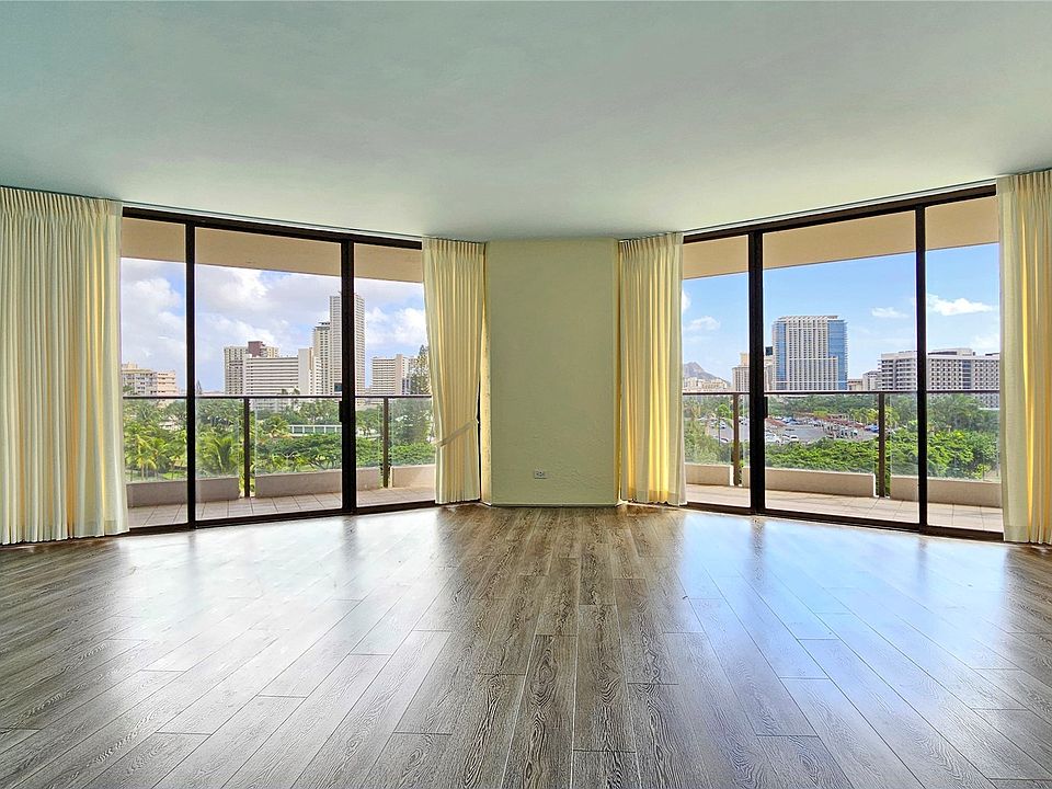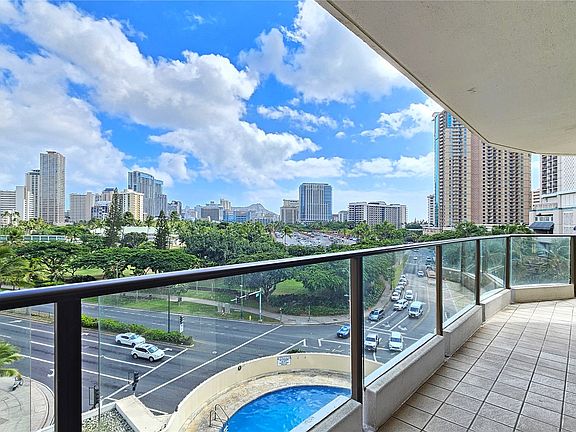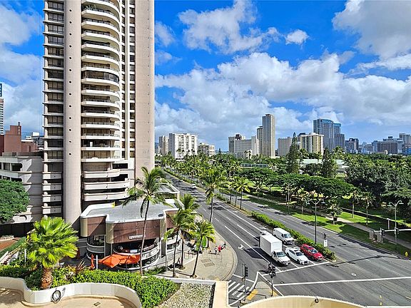 Trustees finally obtained probate approval after 6 months of waiting. Rarely available & extra spacious 1,331 sq ft "00" 2 bedroom 2 bath with 226 sq ft lanai. Lease extended to 2069. Enjoy the outstanding view overlooking the open area of Fort DeRussy and Diamond Head. Desirable split bedroom floor plan (bedroom either side of living room, both with entrance to lanai & view). Renovated with popcorn ceiling removed, laminate floor (2021), carpet (2024), kitchen counter top (2020), stainless steel induction range (2021) washer/dryer (2022), cellular shades (2024), toilet (2021). Primary bedroom has a walk-in closet. Close to Waikiki beach and Hilton Hawaiian Village and the weekly fireworks show. Island Country Mart is conveniently located on the ground level. Covered secured parking stall and 2 storage locker located just outside unit door. Large BBQ area and pool area. Pet friendly.