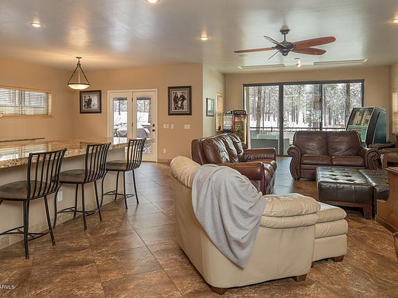 PICTURE PERFECT IN BOULDER POINTE. Desirable single level home with 4 Bedrooms,3 Bathrooms and a 3 CAR GARAGE. Open concept floor plan with a gorgeous chef's kitchen that has granite counter tops, an island,Travertine backsplash, 42 inch maple cabinets, 2 sinks, wine refrigerator, huge walk in pantry and stainless steel appliances. The master retreat has a spa like bathroom with jetted tub, large walk in closet and a door to the deck. This home is set up to take in the outdoors with massive glass windows and doors to the custom deck that spans the entire back of the home. Take advantage of Flagstaff's wonderful weather and live the good life while entertaining outdoors on the over sized deck that has a covered lounge overlooking the lush and landscaped yard with a 25 x 40 Sport Court.
