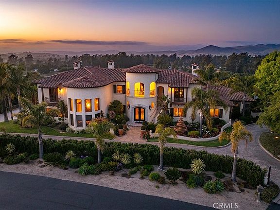 Welcome to 1860 Calle Laguna, a magnificent custom-built estate in the prestigious gated community of Black Lake Ranch Estates in Arroyo Grande, CA. This luxurious European-style villa, built in 2004, offers unparalleled elegance and sophistication, set on a spacious 2.56-acre lot with breathtaking panoramic and ocean views. Step inside this 5-bedroom, 7-bathroom masterpiece, where no detail has been overlooked. From the walnut flooring to the artistry on the ceilings, wrought iron staircase, and the detailed tile work in every bathroom - the thoughtfulness in design is evident. Each bedroom has an en-suite bathroom and features spacious walk-in closets, providing ample storage and comfort for family and guests. The primary suite is a true sanctuary, reminiscent of a high-end spa, complete with a double sided fireplace, exquisite Indonesian sinks, luxurious finishes and a large soaking bathtub. The gourmet kitchen is a chef’s dream, boasting high-end Thermador and Viking appliances, copper sinks, sandstone countertops, a built-in wine fridge, and an expansive walk-in pantry. Entertain with ease in the beautifully appointed living spaces, including a parlor with a piano and bar that leads to the back patio, a dining room suited for royalty, living room with 23 ft ceiling and bar, and a game room dedicated to leisure with a pool table, bar, and bathroom. The piece-de-resistance is a 1500 bottle wine cellar that will impress even the most discriminating wine enthusiasts.