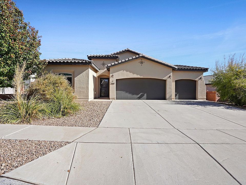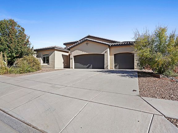 WOW! Seller offering $5k concessions This spotless, loving cared for single level home has it all, 3 bedrooms, 2.5 baths, plus a large office that could serve as a 4th bedroom. The fabulous kitchen features granite countertops, a huge island with bar seating, stainless steel appliances, a large pantry, and ample cabinet space. Enjoy the open dining and family rooms filled with natural light. The split primary suite offers a walk-in closet and spa like bath with a garden tub, separate shower, and double vanity. Extras include a wide entryway, 3 car garage, tile roof, tankless water heater, and an East facing backyard with a covered porch and pergola for relaxing New Mexico evenings.