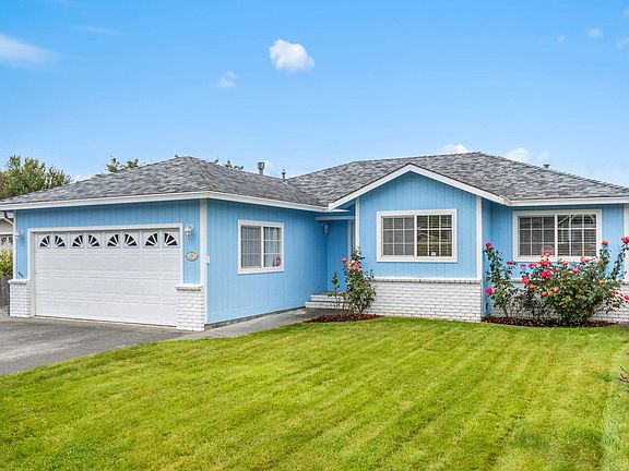 Charming and inviting, this adorable three-bedroom, two-bathroom home is nestled in a coveted cul-de-sac. Inside, discover the warmth of genuine hardwood floors, a bright kitchen boasting granite countertops, and an open living room with vaulted ceilings. Both bathrooms have been tastefully renovated for modern comfort. Step outside to a serene backyard oasis. Bathed in sunlight, this idyllic space features a lovely patio, fragrant rose bushes, a convenient built-in sprinkler system, and lush greenery, creating the perfect setting for relaxation and entertaining. Plus a two car garage provides ample parking. Pride of ownership is exemplified throughout. Don't miss the opportunity to make this delightful house your home. Schedule a showing today!