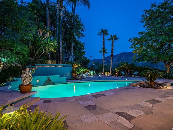 This 1957-built mid-century traditional view home offers tranquility & a resort lifestyle. Located in the coveted Royal Canyon hillside neighborhood, the property is an oasis from city life and minutes to DTLA plus the terrific cities surrounding Glendale. This impeccable home has incredible space with flexible uses. The formal living room with a fireplace has gracious views of the mature Japanese pine tree and Glendale city lights beyond. The great room also has a fireplace & includes a large dining area. This room features a wall of windows & sliding doors opening to the flat backyard. The sleek galley kitchen has a pool view and is equipped with two Sub Zero refrigerators, SS appliances, pantry room, breakfast bar and granite counters. Three bedrooms and two bathrooms are located in one wing of the home. The primary bedroom suite has two closets, dual vanity in bathroom, views of the pool and a door to the backyard. One bedroom is used as an office with two custom built in desks and matching cabinetry. Ideal for today's work at home and on-line school needs. There is a 374 sq ft family room a few steps up from the kitchen with vaulted ceilings to create your perfect space as a game room, office or guest room. The property wraps around the home with views from every room & includes surround sound inside & outside, a pool with waterfall & spa creating the California dream home! Glendale schools. Close to studios, Americana & 3 freeways.