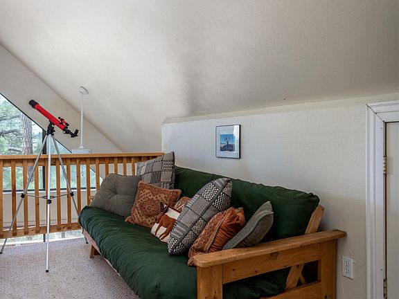 The Perfect Chalet for your mountain home. This 3 bedroom 2 bath home is located on .9 acres of beautifully treed lot. Low maintenance with metal roof and Hardy Board siding, which is scheduled for painting in September. Amazing tree lined views and cool mountain air are perfect for relaxing on the wrap-around deck. Inside you will find vaulted ceilings, a two-way rock fireplace, laminate flooring, and a loft, adding to this cozy get-away.