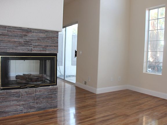Live large in this totally remodeled and custom upgraded 3 bedroom 3 bath Ambiance beauty with a loft and an attic retreat. From the exquisite olive wood floors throughout to the granite counters, custom tile and grandly open floor plan, you will know your are in someplace special. The 3 sided fireplace divides the family and living and a window wall opens to spacious, private yard with palms, planters and lawn area. This home screams quality and quantity in every one of its 1,753 square feet. Plantation shutters, fresh paint and new appliances round out this wonderful home with Amazing Ambiance.
