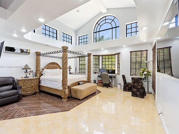 ROOF WILL BE BRAND NEW. Experience one of Eagle Trace’s finest estates! Nearly an acre with 8,000+ sq. ft., 6 bedrooms, 9 baths, and 3-car garage. Soaring 30-ft ceilings, marble floors, and natural light set the tone. Resort-style amenities include heated pool, spa, sauna, steam shower, fireplace, and wet bar. A dramatic foyer with sweeping staircase opens to spacious living areas and a chef’s kitchen with granite counters, large island, and Jenn-Air appliances. Upstairs loft is perfect for a game or media room. The grand primary suite offers pool views, custom closets, and a spa bath with Jacuzzi, dual vanities, and bidet. Circular drive and ample parking add convenience. In the exclusive gated golf community of Eagle Trace, this rare home blends luxury, comfort, and privacy.